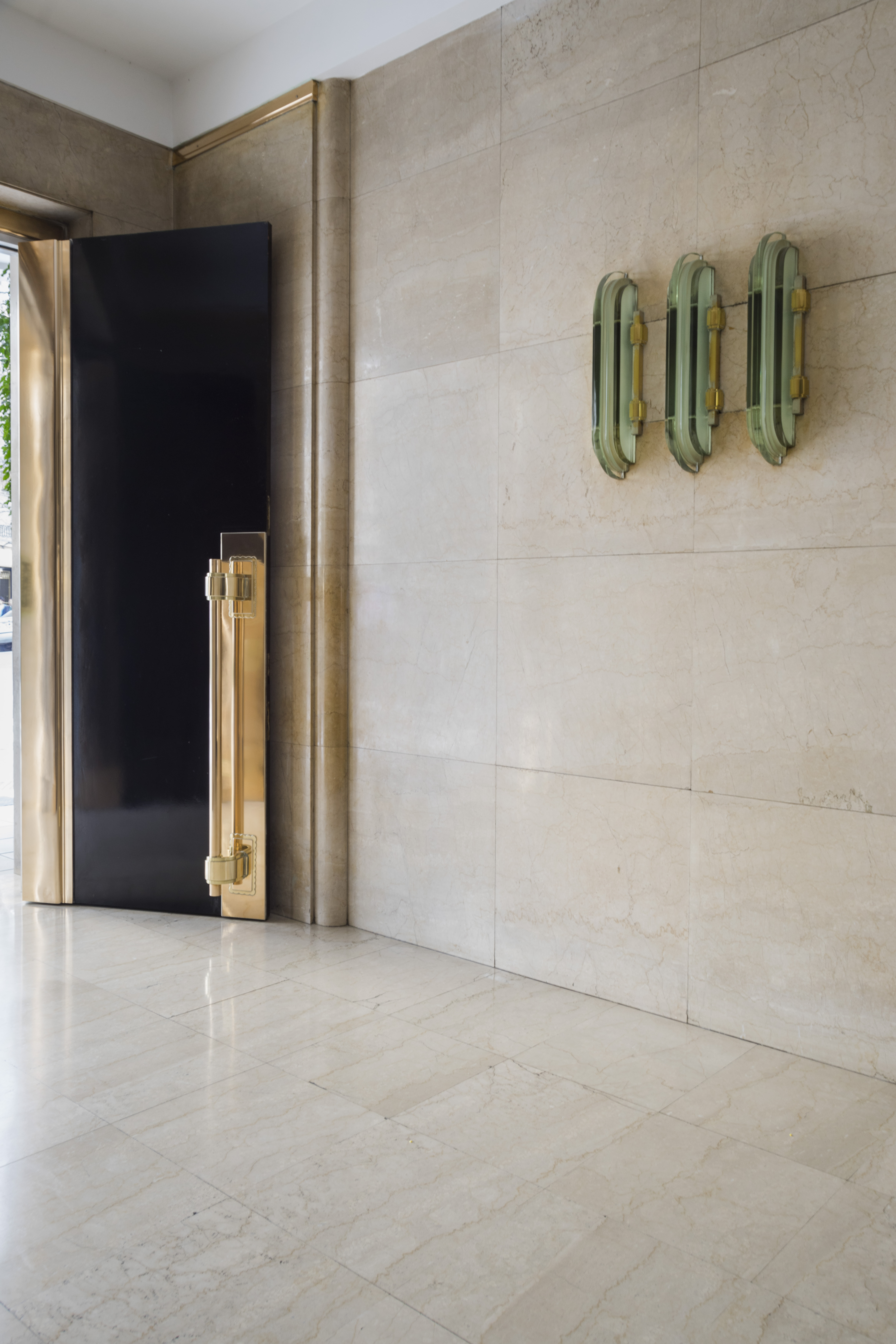 The harmony of the volumes, the balconies and the large windows, the porthole windows of naval imprint characteristic of the time, the success of the large canopy and the double bronze door - with a certain reminiscence of art deco-, with two separate planters that frame it, the sumptuous and severe style of the large entrance hall -with its large side lamps- and its walnut-veneered elevators, make this a great building, immune to the passage of time.